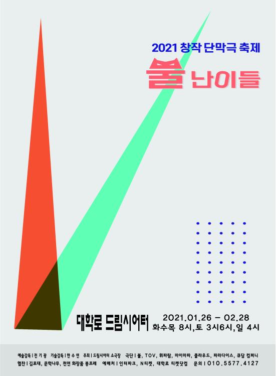 [플레이뉴스 문성식기자] 무시무시한 코로나에, 잔인한 자본전쟁에, 현란한 영상시대에, 지쳐있는 모든 이들에게 뿔난 축제 에 초대한다. 2021년 1월 26일부터 2월 28일까지 창작단막극, 뿔난 축제를 개막한다.