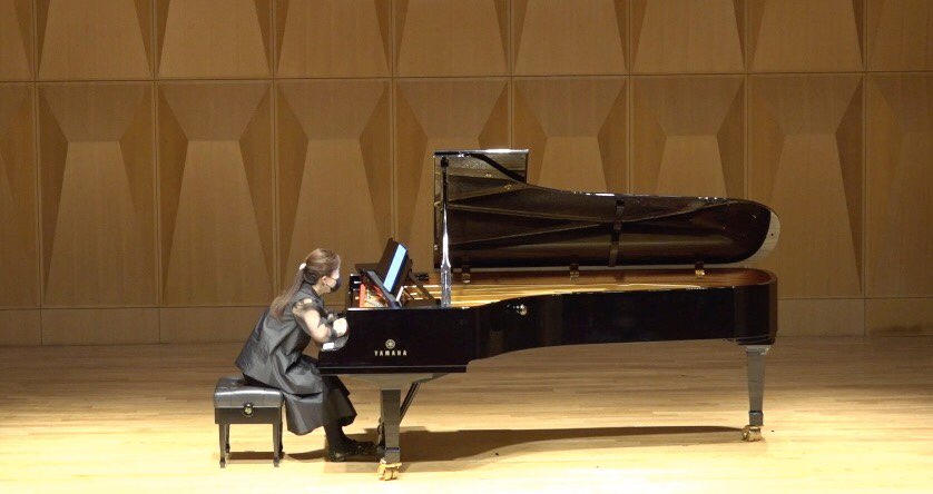 내가 쉼표와 간헐적인 음표의 앙상블 연주 때에 쉼표와 음표 사이에 악기 주자간 느낌 연결이 잘 안되더라는 글을 일전에 쓴 적이 있다. 곡 후반부에는 이런 간헐적인 음의 연주가 있었다. 윤혜성의 음표와 쉼표는 안 지루하고 오히려 사유감이 느껴졌다. 스포르찬도의 고음 후 중음역대의 음이 페달로 지속되고, 마무리로 동시에 저음과 고음 스타카토를 하는 형태의 연결이 점점 반음씩 올라간다. 어디를 향해 달려갈까, 어느 음까지 올라가나 궁금하며 이제야 권태롭고 위태롭다고 느끼는 그 순간, 왼손과 오른손이 고음부에서 강렬히 겹치며 공연이 성황리에 끝났다.