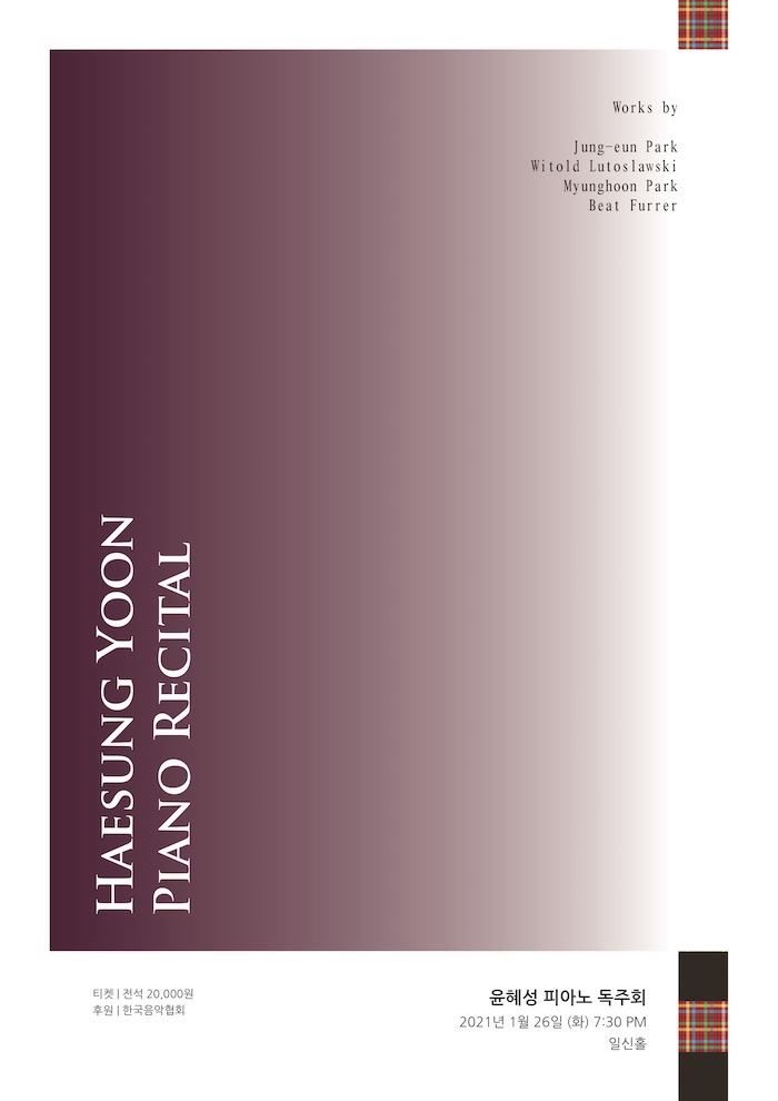 <윤혜성 피아노 독주회>가 지난 1월 26일 저녁 7시 30분 서울 한남동 일신홀에서 열렸다. 윤혜성은 서울예고 졸업, 삼익콩쿨, 한국일보콩쿨, 음연콩쿨에서 모두 1위를 하였으며, 독일 쾰른 국립음대 최고연주자과정, 그리고 프랑크푸르트 국립음대 현대음악 석사과정, 세계적인 현대 음악 전문단체인 독일 앙상블 모데른의 아카데미(IEMA) 장학생, 칼스루헤 현대음악 국제콩쿨 연주부문 1위 등 국내외 정통클래식부터 현대음악까지 다양한 경력을 쌓으며 피아노 세계의 확장된 모습을 선보이는데 앞장서고 있다.
