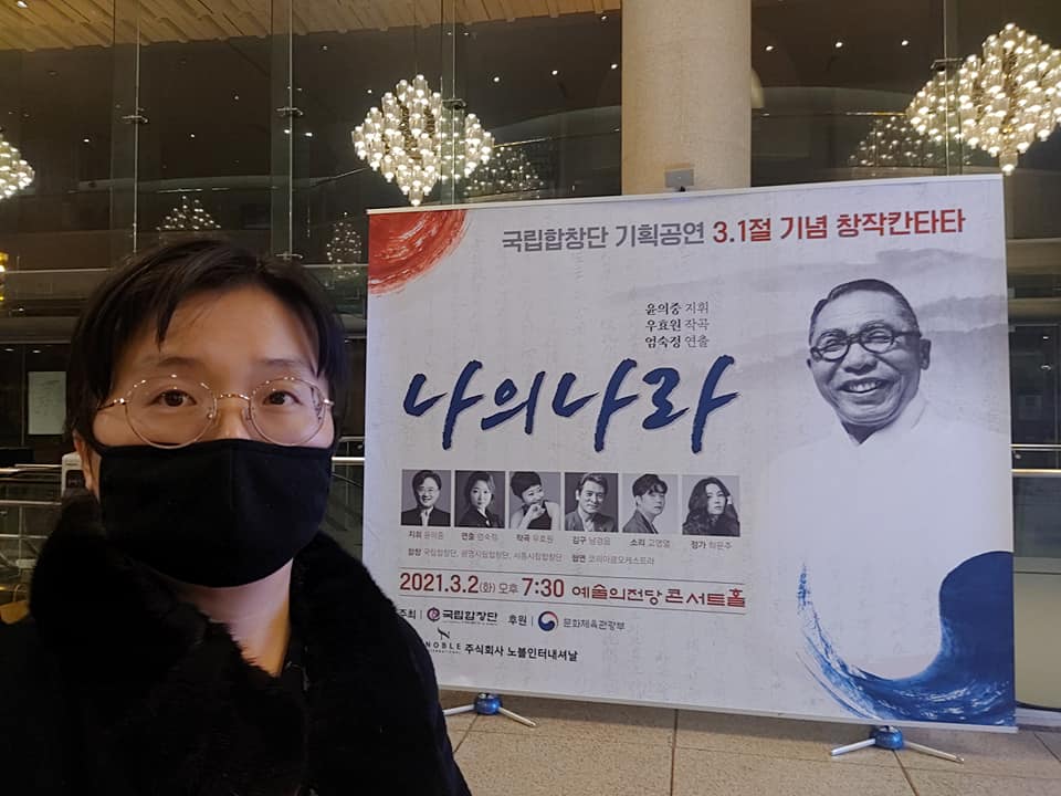그렇다면, 잘 만들어져서 이제 막 2회 공연된 국립합창단 3·1절 기념 창작칸타타 <나의 나라>를 우리는 앞으로 어떻게 할 것인가. 많은 예술가가 저마다의 예술로 나라를 위하는 것도 물론 중요하지만, 이것은 국립에서 심혈을 기울여 만든 나라 브랜드 공연이다.