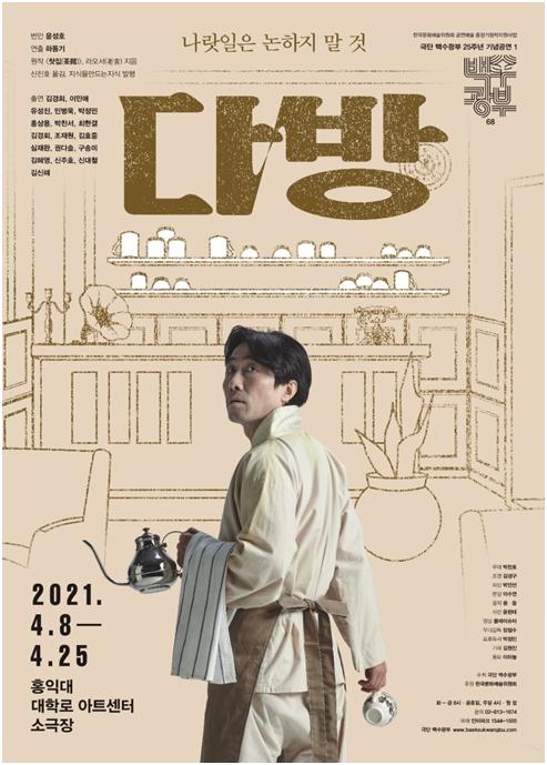 [플레이뉴스 문성식기자] 극단 백수광부가 창단 25주년을 맞이해 첫 번째 기념공연 '다방'을 올린다. '낙타상자' 등으로 잘 알려진 중국 현대 작가 라오서의 '찻집'을 번안했다. '다방'은 극작-연출가로 활발하게 활동하고 있는 윤성호 작가가 번안을 맡고,극단 백수광부의 대표인 하동기가 연출을 맡아 국내 초연으로 상연한다.