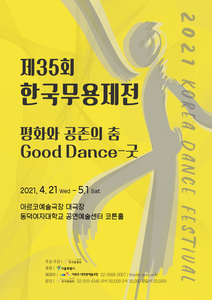 35회 한국무용제전의 주제는 '평화와 공존의 춤 ‘Good Dance-굿’'이다.우리나라에서 굿인간의 소망이 이루어지기를 바라는 제의이고,영어 굿(Good)’좋은, 즐거운,기쁨의 의미를 담고 있다.‘평화는 평온하고 화목함,‘공존은 서로 도와서 함께 존재하는 의미이다.
