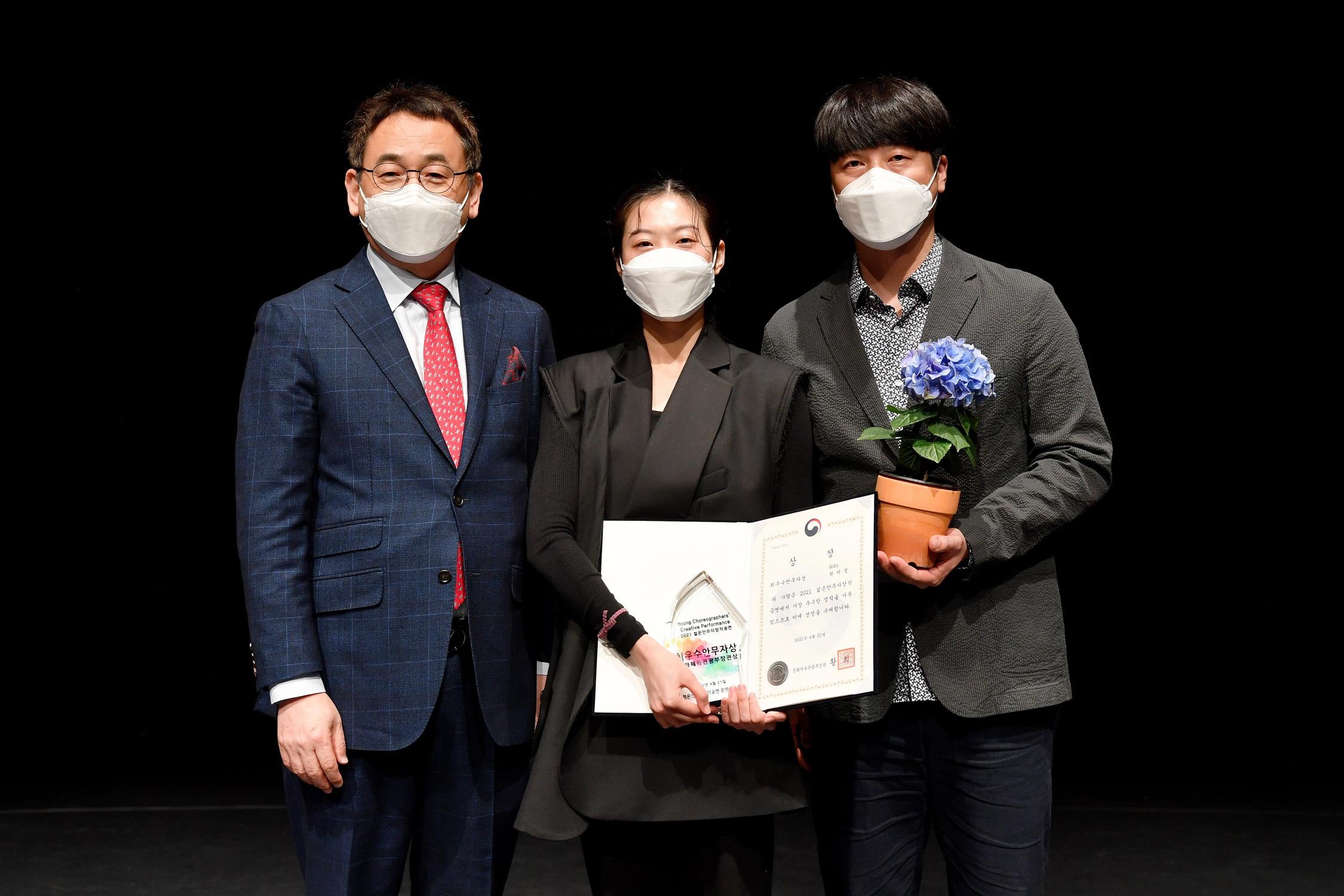 작년과 마찬가지로 올해도 역시 최우수안무자에게는 문화체육관광부장관상이 수여되었다. 2021 젊은안무자창작공연 최우수 안무자상의 영예는“Gobi”을 안무한 권미정에게 돌아갔다. 권미정 안무자는“부족했던 자신을 끝까지 믿어준 가족, 교수님, 그리고 무용수들에게 이 영광을 돌린다”라고 수상소감을 말하며 마음 깊은 감사를 전하였다. 또한, “Tool”를 안무한 권재헌은 우수안무자상((사) 한국무용협회 이사장상)을 수상하였고,“12121?”을 안무한 염정연은 심사위원장상(젊은안무자창작공연 심사위원장상)을 수상하며 뜨거운 관심과 박수를 받았다.