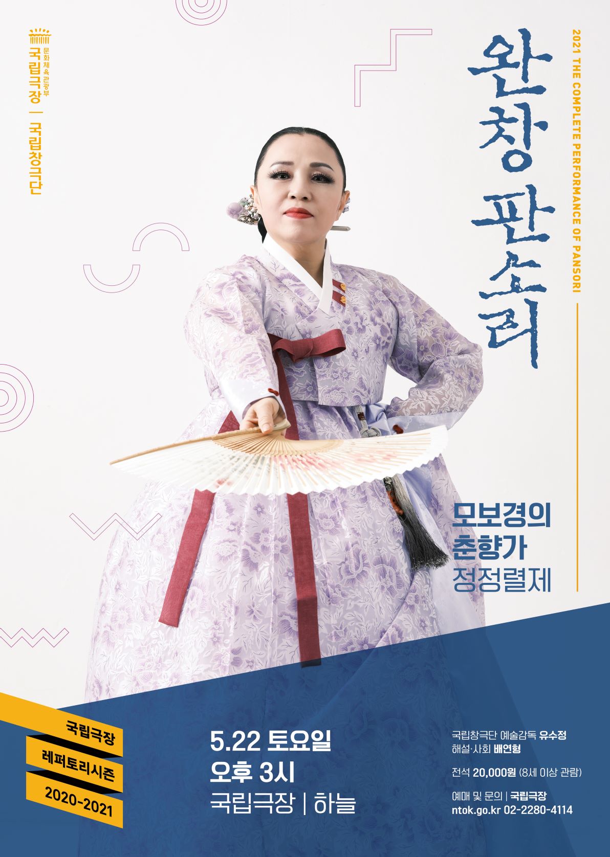 [플레이뉴스 문성식기자] 국립극장(극장장 김철호)은 완창판소리 ‘모보경의 춘향가’를 5월 22일(토) 국립극장 하늘극장에서 공연한다. 전라북도 무형문화재 제2호 판소리 ‘춘향가’ 예능보유자인 모보경 명창은 대를 이어 계승해오고 있는 정정렬제 ‘춘향가’를 장장 여섯 시간에 걸쳐 선보인다.
