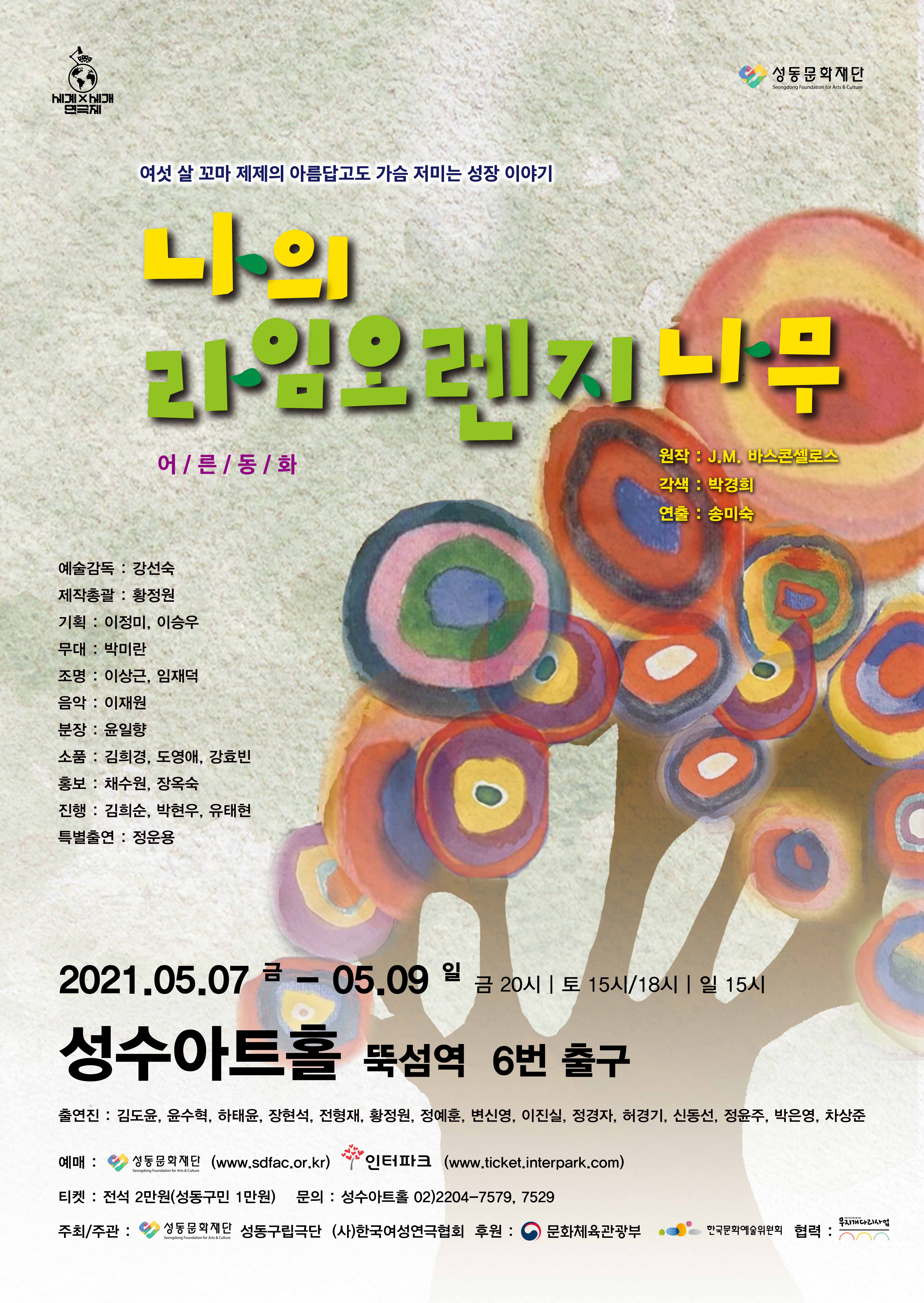 첫 번째 작품 '나의 오렌지 나무'는 성동구립극단과 (사)한국여성연극협회가 베스트셀러 소설 원작을 협력해 만든 공연으로 주인공‘제제’의 이야기를 새롭게 재탄생 할 예정이다. '나의 오렌지 나무'는 5월 7일(금)부터 9일(일)까지 성수아트홀 무대에 오른다.