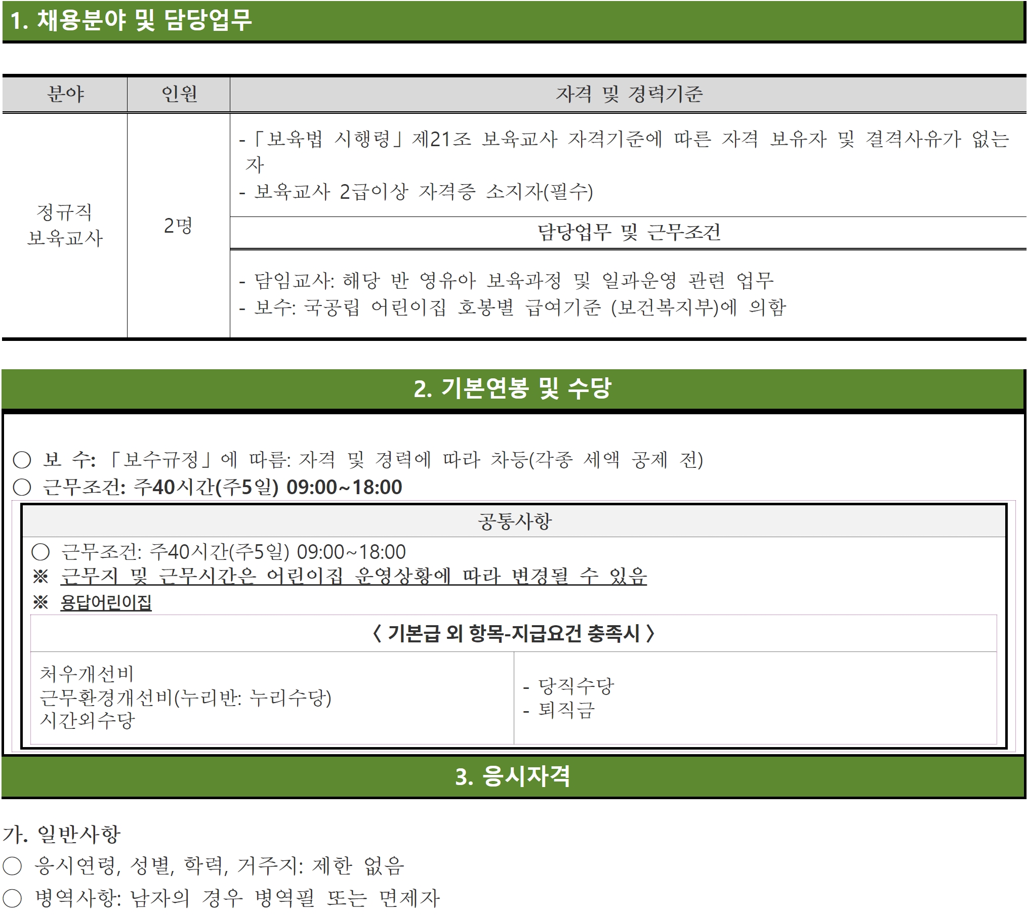 이번 채용은 블라인드 채용으로 진행되며 보육직(보육교사) 분야를 대상으로 한다. 입사 지원은 5월 17일 오후 18시까지이며 성동문화재단 홈페이지 온라인 채용 시스템에서 지원할 수 있다. 응시원서는 성동문화재단 홈페이지에서 다운로드하면 된다.