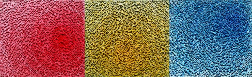 "헤아림의 꽃길"은 보라 덩어리가 사각의 평면을 채우며 잠자고 있던 지구가 지녀온 기억의 두께가 생동감 넘치도록 뜨겁게 분출하여 지구의 기억이 용솟음치고 있는 형상이다.