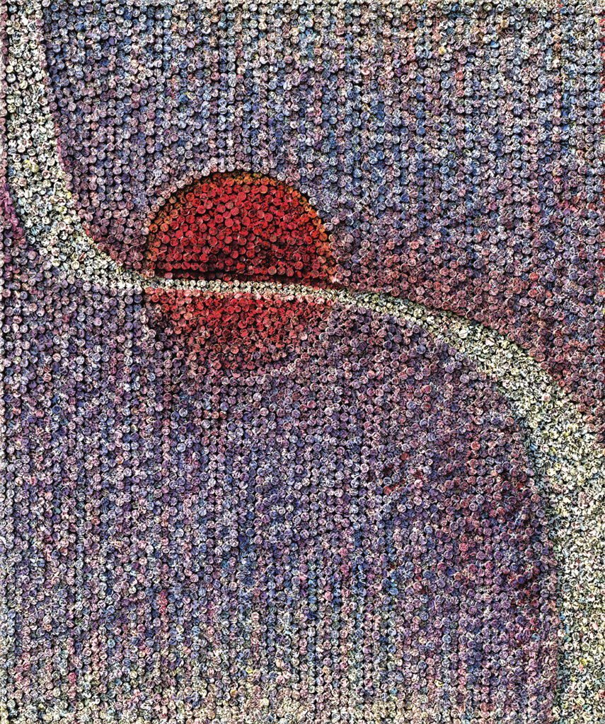 "헤아림의 꽃길"은 보라 덩어리가 사각의 평면을 채우며 잠자고 있던 지구가 지녀온 기억의 두께가 생동감 넘치도록 뜨겁게 분출하여 지구의 기억이 용솟음치고 있는 형상이다.
