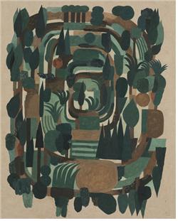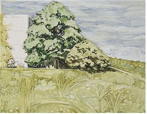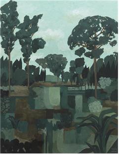 광활한 대지를 배경으로 등장하는 뾰족하고 짙은 초록빛의 나무들은 제주도에 서식하는 삼나무이다. 그의 기억 속에 어렴풋이 남아있는 삼나무 숲은 세모난 도형의 반복된 형태로 질서 정연하게 배열되어 울창하고 청량한 분위기를 이룬다.