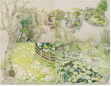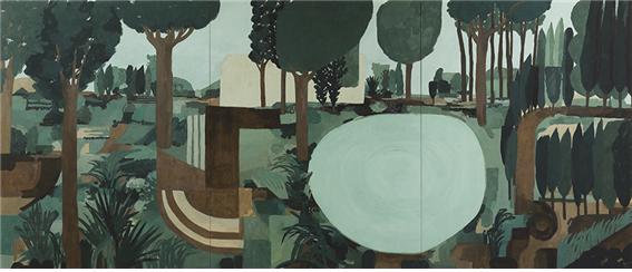 신작 〈유원(留園)〉(2021)는 재개발 사업을 통해 신축 아파트가 들어설 인공조경을 그린 것으로, 우리가 자연이라고 인지하는 것은 어쩌면 인위적으로 만들어지고 박제된 자연일지도 모른다는 의문에서 출발한 작업이다.