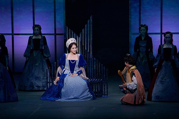이어 왕비에게 시종 스메톤(메조 소프라노 김하늘)이 하프를 연주하며 “아무렇지 않은 척 하지 마세요”하고 위로의 노래를 건네는데, 나한테 얘기하는 것 같아 속으로 깜짝 놀랐다. 1막 2장 윈저성 앞, 안나의 옛 연인 퍼시와 그의 친구이자 안나의 오빠 로쉬포르(바리톤 최은석)가 노래하는 장면도 멋지다. A팀의 퍼시 역 테너 이재식이 폭넓은 고음의 서정성이 호소력이 있었다면, 같은 퍼시역 B팀의 테너 석정엽은 뮤지컬 배우같은 훤칠한 키와 외모와 미성으로 매력선을 펼쳤다.