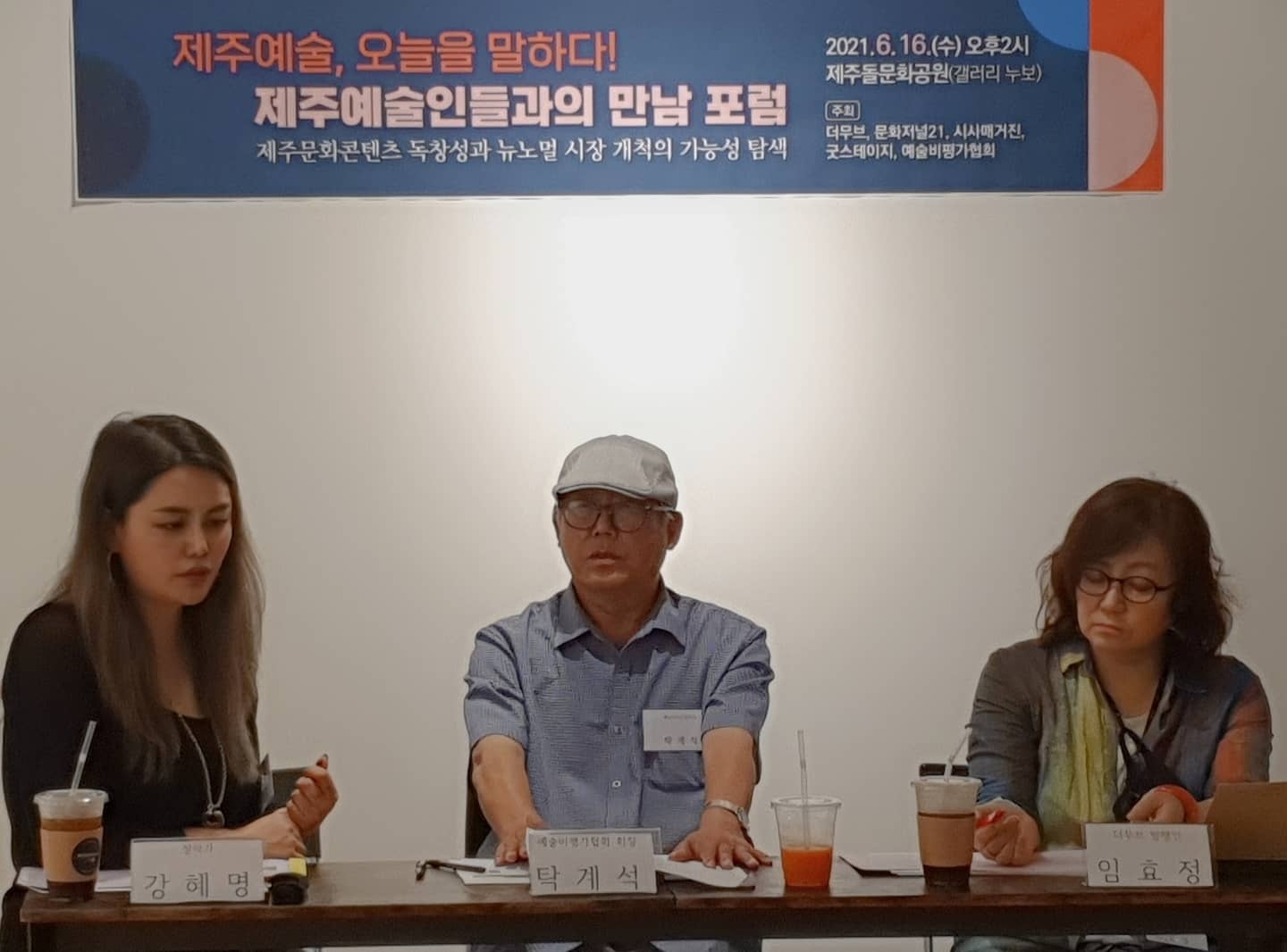 더무브, 문화저널21, 시사매거진, 굿스테이지, 예술비평가협회 주최의 이번 행사는 '제주문화콘텐츠 독창성과 뉴노멀 시장 개척의 가능성 탐색'에 대한 자리였다. 한국예술비평가협회 탁계석 회장이 좌장을 맡았으며, 제주출신 강혜명 소프라노, 임효정 더무브 발행인을 주축으로 제주아트센터기획자인 김태관 박사, 문효진 작곡가 겸 피아니스트, 김남훈 빌레앙상블 대표가 포럼에 참석했다.