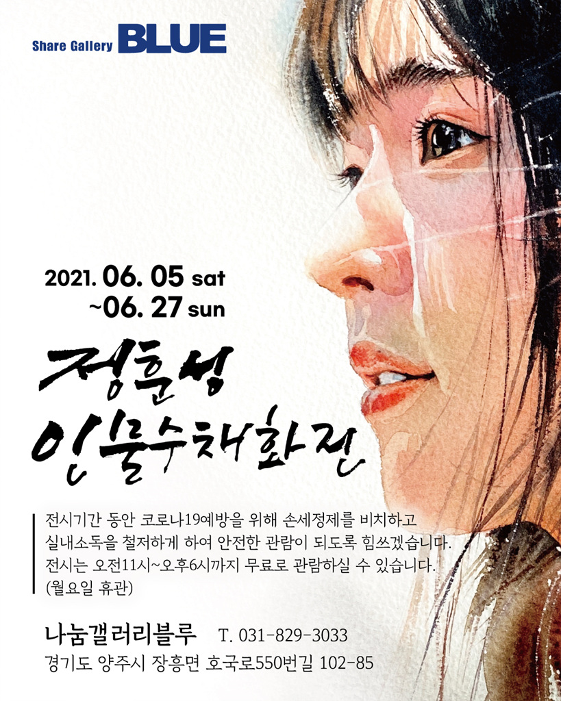 2021년 6월 5일(토) ~ 6월 27일(일)까지 경기도 양주 소재의 나눔갤러리블루(관장 박선미)에서 "정훈성 인문수채화전" 타이틀로 관람객을 맞이하고 있다.