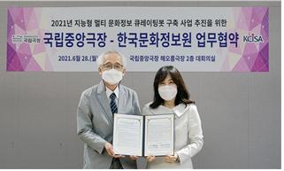지난 6월 28일(월) 국립극장 해오름극장에서 진행된 업무협약식에는 국립극장 김철호 극장장과 한국문화정보원 홍희경 원장 등 두 기관 주요 관계자가 참석해 큐아이 서비스의 성공적인 구축을 위한 협력을 추진키로 했다.
