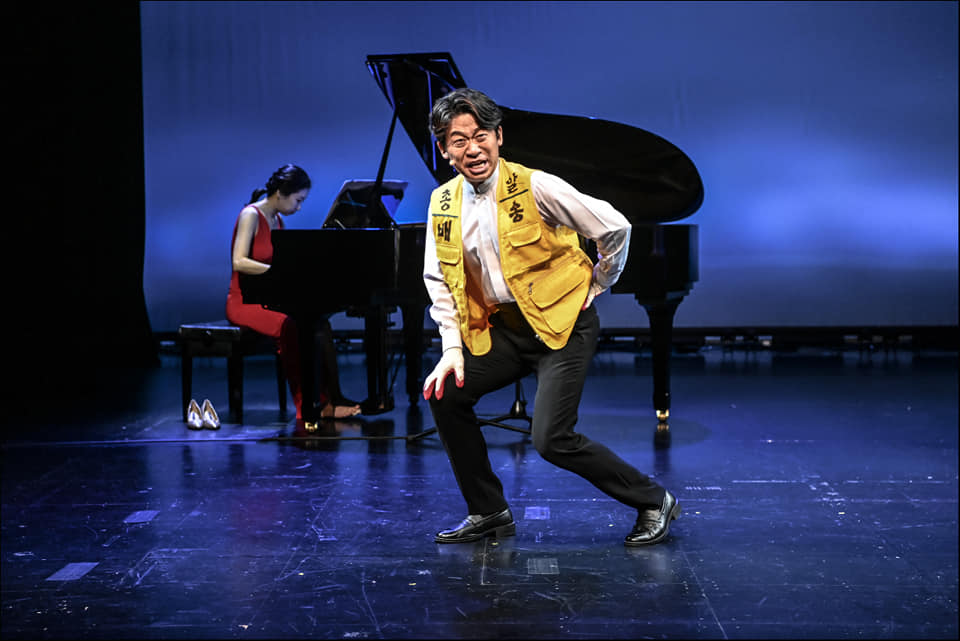 중후한 목소리에 맛깔스런 표정연기까지 바리톤 김재일은 경비원이 되어 바닥도 쓸고, 발레 점프도 하고, 택배 노동까지 전천후 1인 다역이었다. 그가 8곡 '택배기사'에서 "그래도 이만한 일 없어. 학력지위 차이없이 일한만큼 가져가요."라고 노래하고, 피아노 프렐루드 때 오브제를 무대 뒤에서 앞으로 여덟번 넘게 직접 옮길 때는 관객인 내가 다 미안한 생각까지 들었다. 평소 집에서 택배 받을 땐 못 느꼈는데 말이다. 이렇듯 평소 놓쳤던 문제와 감정들을 가극 <아파트>는 짚어주었다.