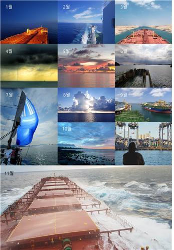지난해 사진 출품작 중 SK해운 이항사 최봉근(1월), 대한해운 가족 장나현(2월), 삼기사 조성호(3월), HMM 일항사 이덕형(4월), 대한해운 선장 배재철(5월), 부산해사고 김정현(6월), 일반 이순우(7월), 에이치라인 선장 조기주(8월), HMM 이항사 장세윤(9월), 배정고등학교 정우진(10월), 에이치라인 일항사 김태영(11월), 고려해운 항해사 이성재(12월) 등 12개 작품을 선정했다.