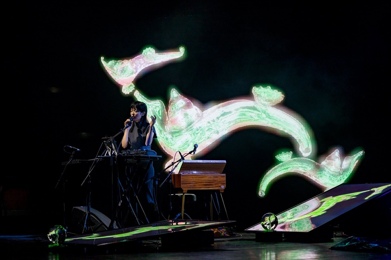 다음으로 8곡 '소무-독경'은 4곡 '귀인-형가'의 무대가 더욱 발전해 자줏빛 산호초 무대 속에 박민희와 최혜원의 아바타가 네 개 영상에서 전통무인 '일무'를 추고, 박민희와 최혜원이 실제로 일무를 추어 더욱 생동감을 주는 클라이막스를 만들어냈다. 9곡 '태평가'에 이어 10곡 '부러울 것 없어라'는 남창가곡 '불아니'를 모티브로 감각적인 나래이션과 허밍이 인상적인데, 온스테이지 무대에서는 붉은 강렬함을 주었다면 이날은 푸른 배경으로 여름의 시원함을 주면서 11곡 '경포대로 가서'로 공연의 대미를 장식했다.
