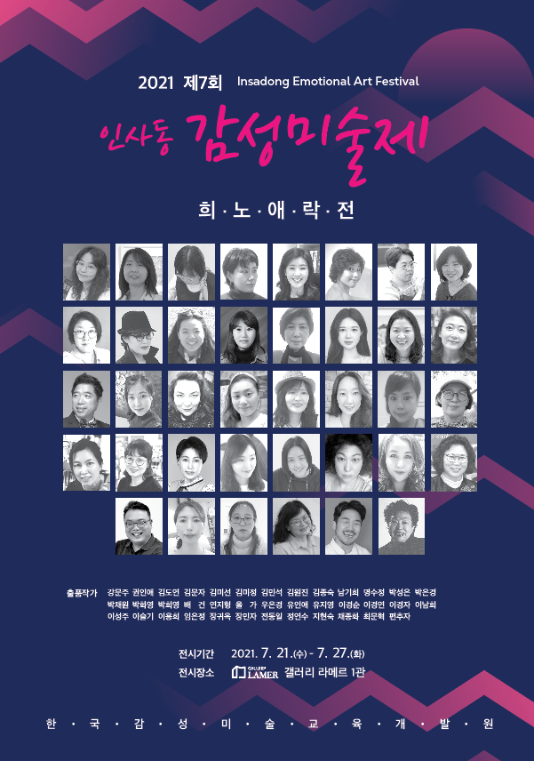 [플레이뉴스 문성식기자] 2021 제7회 인사동 감성미술제 '희노애락전'이 2021년 7월 21일(수) ~ 7월 27일(화)까지 인사동 갤러리 라메르 1관에서 펼쳐지고 있다. 화가, 미술교육자, 학생 등 각자의 개성과 감성을 자유롭게 표현한 작품으로 작가 활동할 수 있도록 연구와 지도를 진행하는 한국감성미술교육개발원 주최로 전시가 이루어졌다.