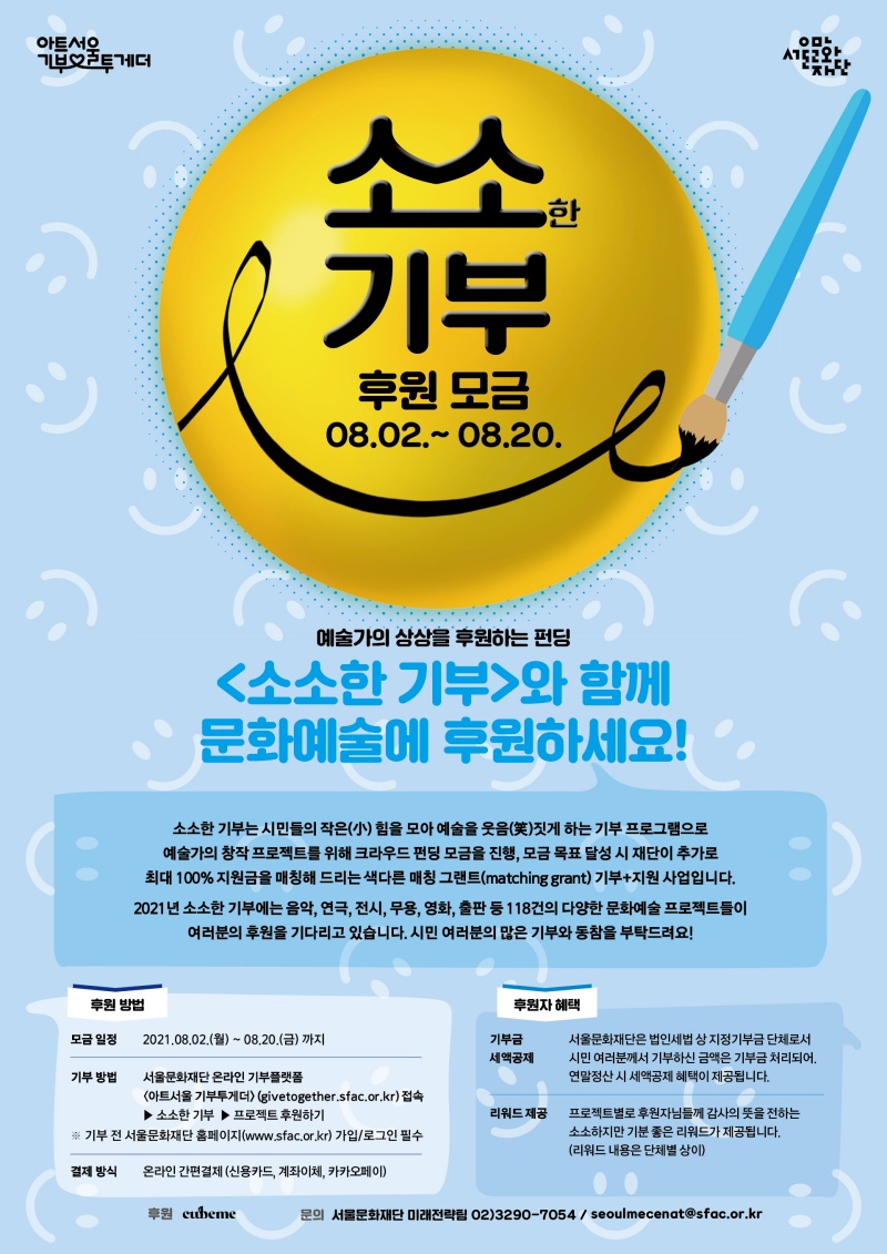 ▶ 누구나 예술 프로젝트 후원자가 될 수 있는 '소소한 기부' 8.2.(월)~8.20.(금) 모금