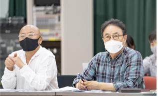 | (왼쪽부터) 최정화 시노그래퍼, 김명곤 연출가 | 창극 ‘흥보展’ 대본 리딩 현장 |