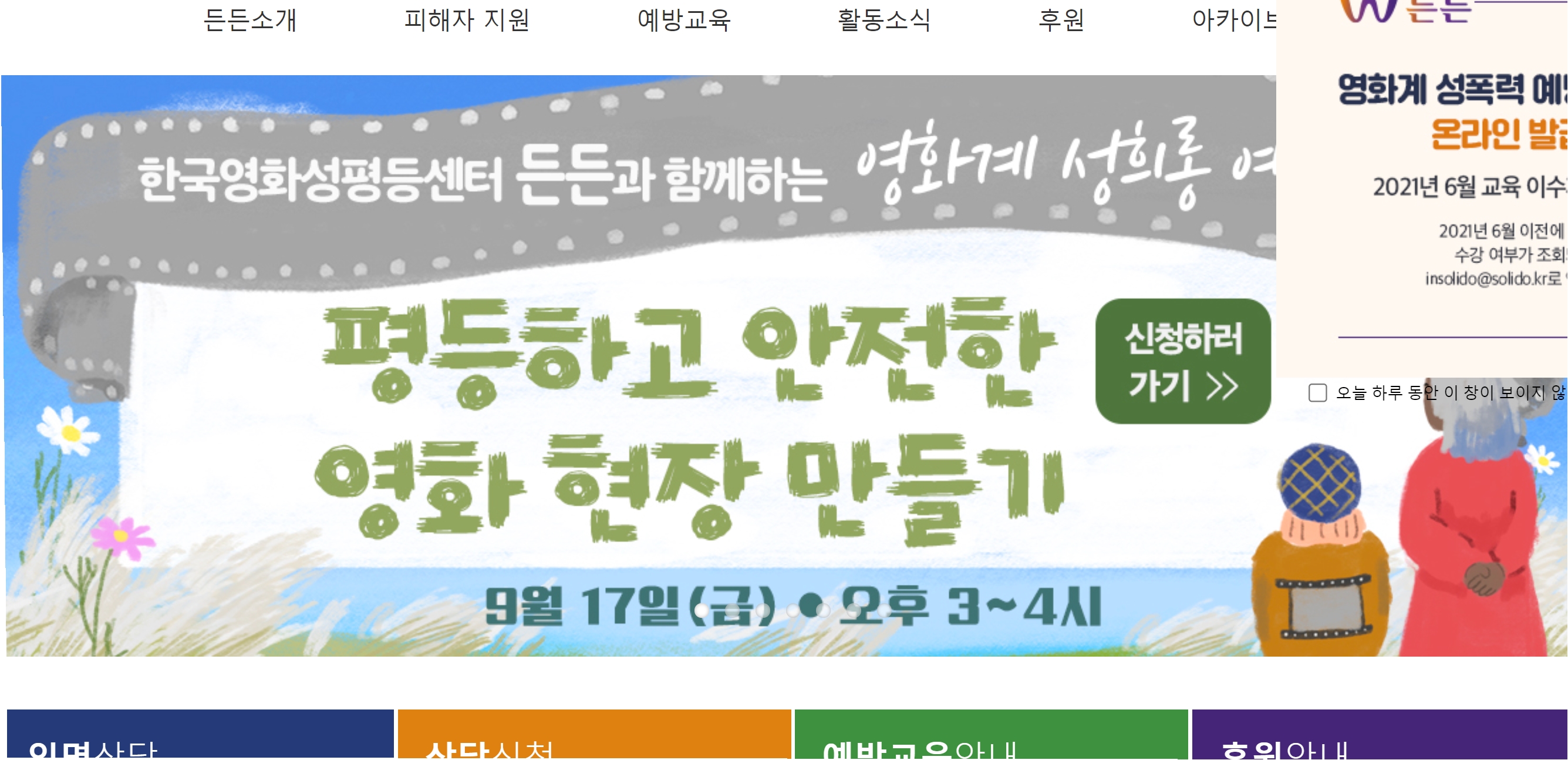 든든은 2021 표준강의안을 통해 각 수강 대상의 특징을 반영한 체계적이고 실효성 있는 예방교육을 진행하고자 한다. 또한 든든은 영화산업 내 성폭력 이슈와 사례가 담긴 강의안을 지속적으로 개발할 계획이라고 밝혔다.