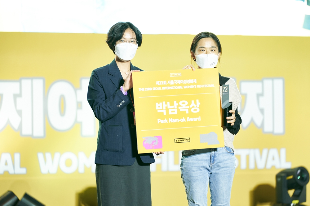 이어서 진행된 한국 최초의 여성 영화감독 박남옥 감독을 기리는 ‘박남옥상’ 시상식에서는 <깃발, 창공, 파티>의 장윤미 감독에 대한 시상식이 진행됐으며 장혜영 의원의 축하인사와 장윤미 감독의 수상소감으로 훈훈한 분위기를 더했다.