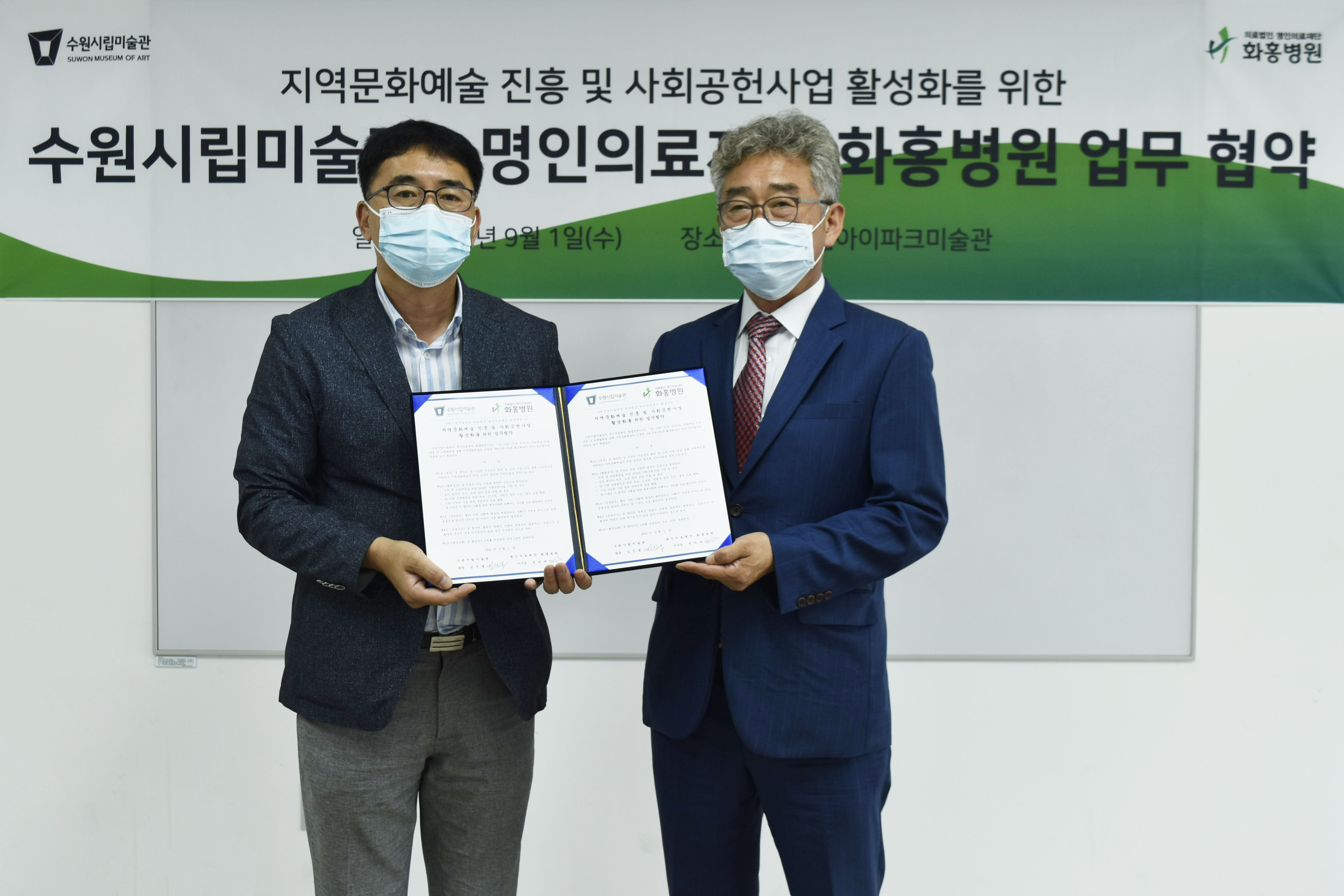 [플레이뉴스 문성식기자] 경기도 수원시립미술관(관장 김진엽)과 명인의료재단 화홍병원(이사장 전덕규)는 9월 1일(수) 지역문화예술 진흥과 사회공헌사업 활성화를 위한 업무 협약을 체결했다.