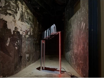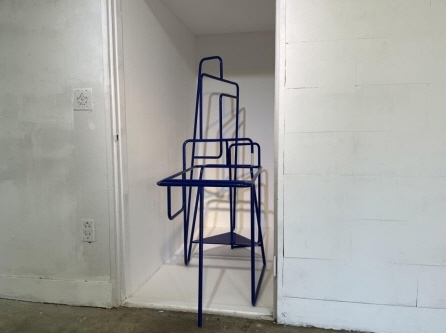 부정적 모순_2021_테이블 다리, 철, 분체도장, 아크릴_70×130×150(h)cm