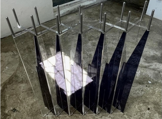 사변적 모순_2021_스테인리스 스틸, 아크릴_110×80×70(h)cm