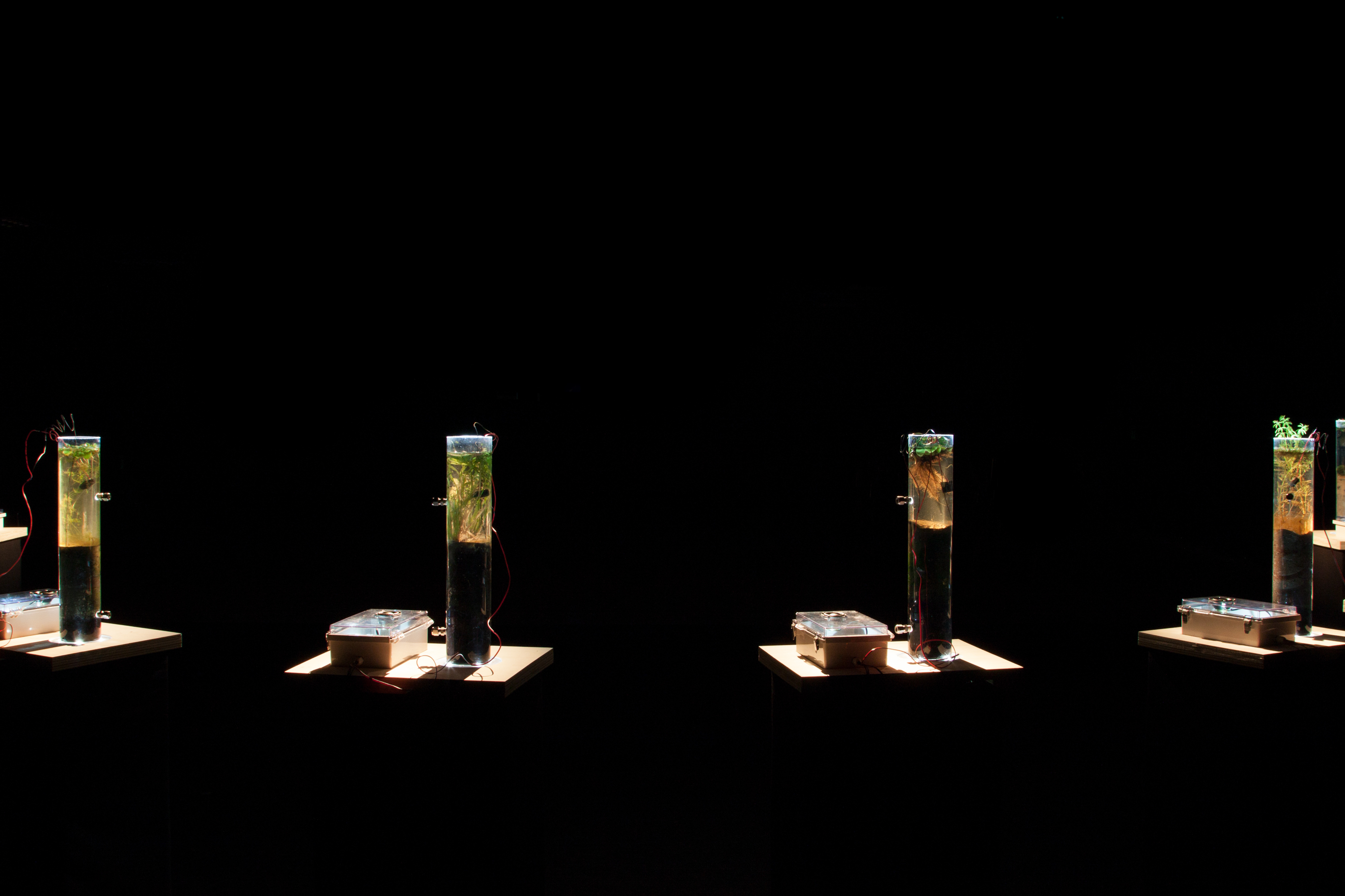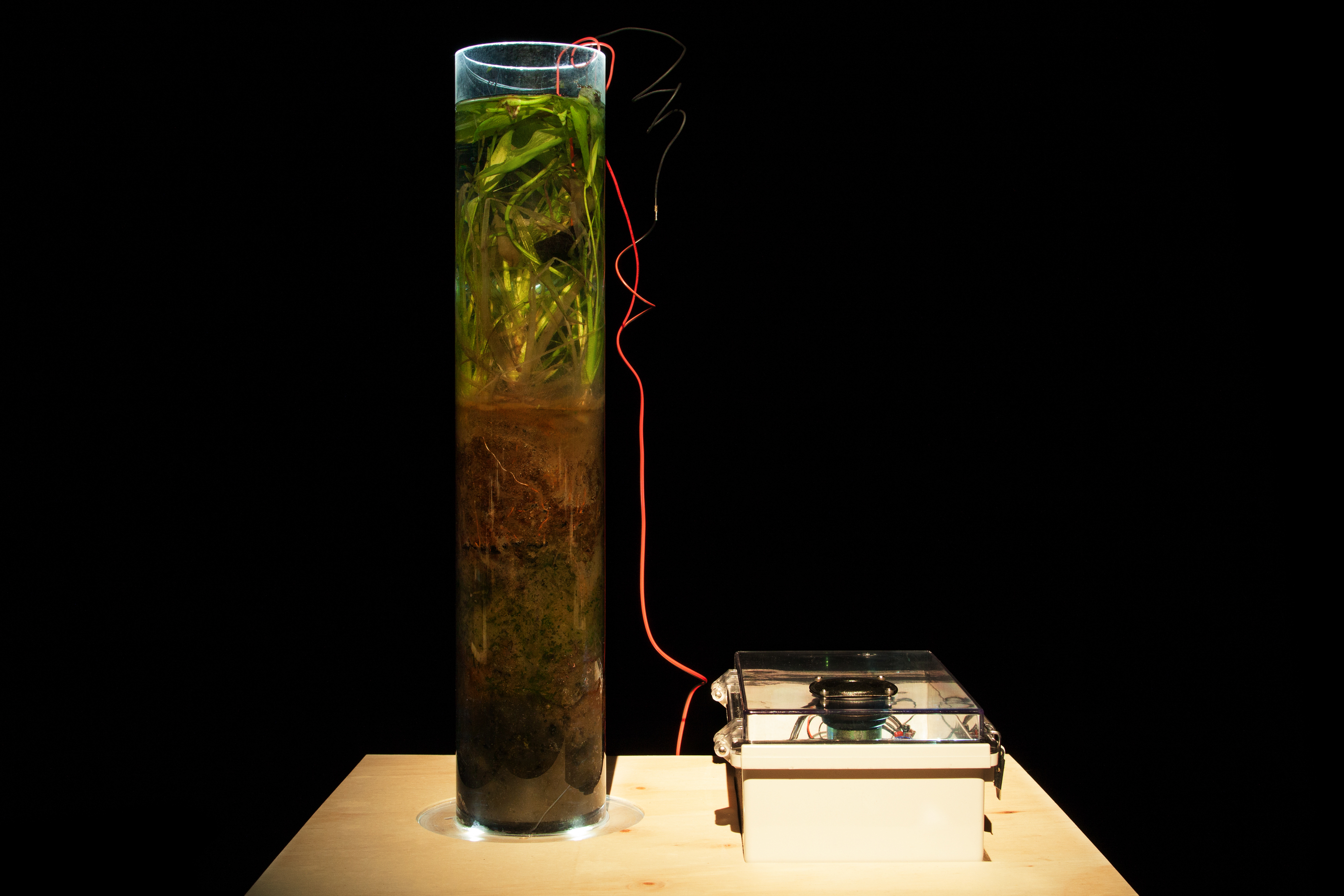 세 번째는 안효주 작가의 '자연의 청각신호'로 작가의 '소노매터(Sonomatter)'(2017) 작품과 연계하여 어린이 집 주변에서 수집한 흙으로 자연 생태계를 창작하고, 그 안에서 미생물의 움직임이 만들어내는 전기에너지를 우리가 감각할 수 있는 청각신호로 변환하여 들어볼 수 있도록 하였다.