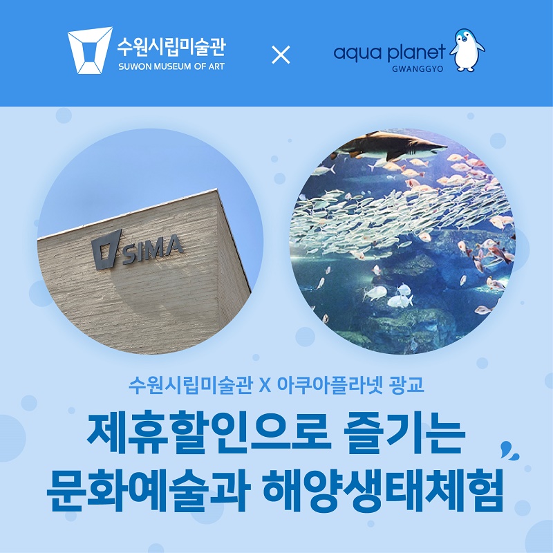 [플레이뉴스 문성식기자] 경기도 수원시립미술관(관장 김진엽)은 아쿠아플라넷 광교와 함께 9월 7일(화)부터 풍성한 제휴할인 행사를 진행한다.
