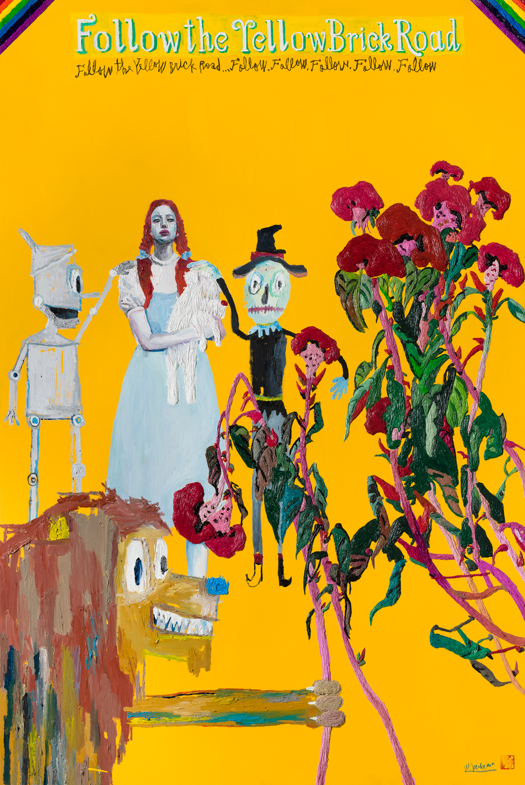 종교와 철학에 관심을 가지고 삶에 대한 본질적 질문을 담아내되,너무 무겁지 않게 동화적 요소를 사용하며 위트를 더한 그의 작업은 이번 전시에서 아버지의 작품에 대한 오마주로 이어진다.