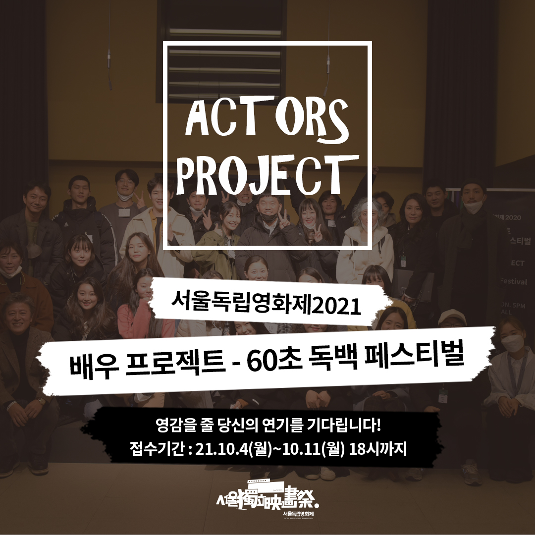 ‘서울독립영화제2021 배우프로젝트-60초 독백 페스티벌’은 독립영화 진영의 신진 배우를 발굴하고, 활동을 독려하고자 기획되었으며 올해로 4회를 맞는다. 2018년 배우 권해효의 제안으로 시작되어 첫해부터 1,440명의 지원자가 몰리며 큰 화제를 모은 바 있다.