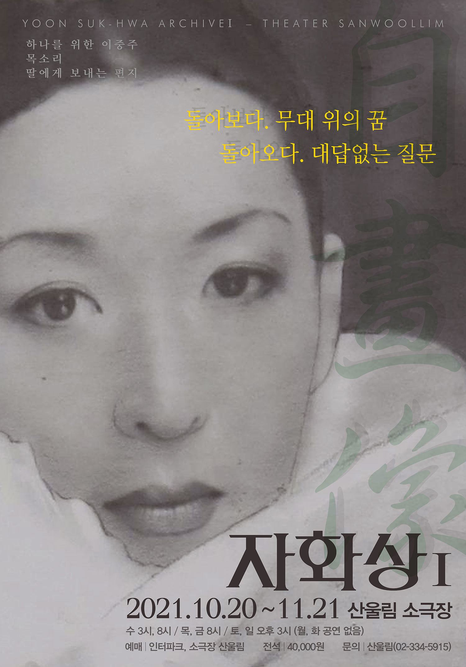 주마등처럼 스쳐 지나가는 그 긴 연기 인생 속에서 유독 강렬한 인상을 남긴 장면들과 이야기를 되새기는 일, 그것이 배우 윤석화가 무대 위에서 그리고자 하는 자화상이다. 그 여정은 아마도 길 것이고, 시작은 어쩌면 자연스럽게도 소극장 산울림이다.