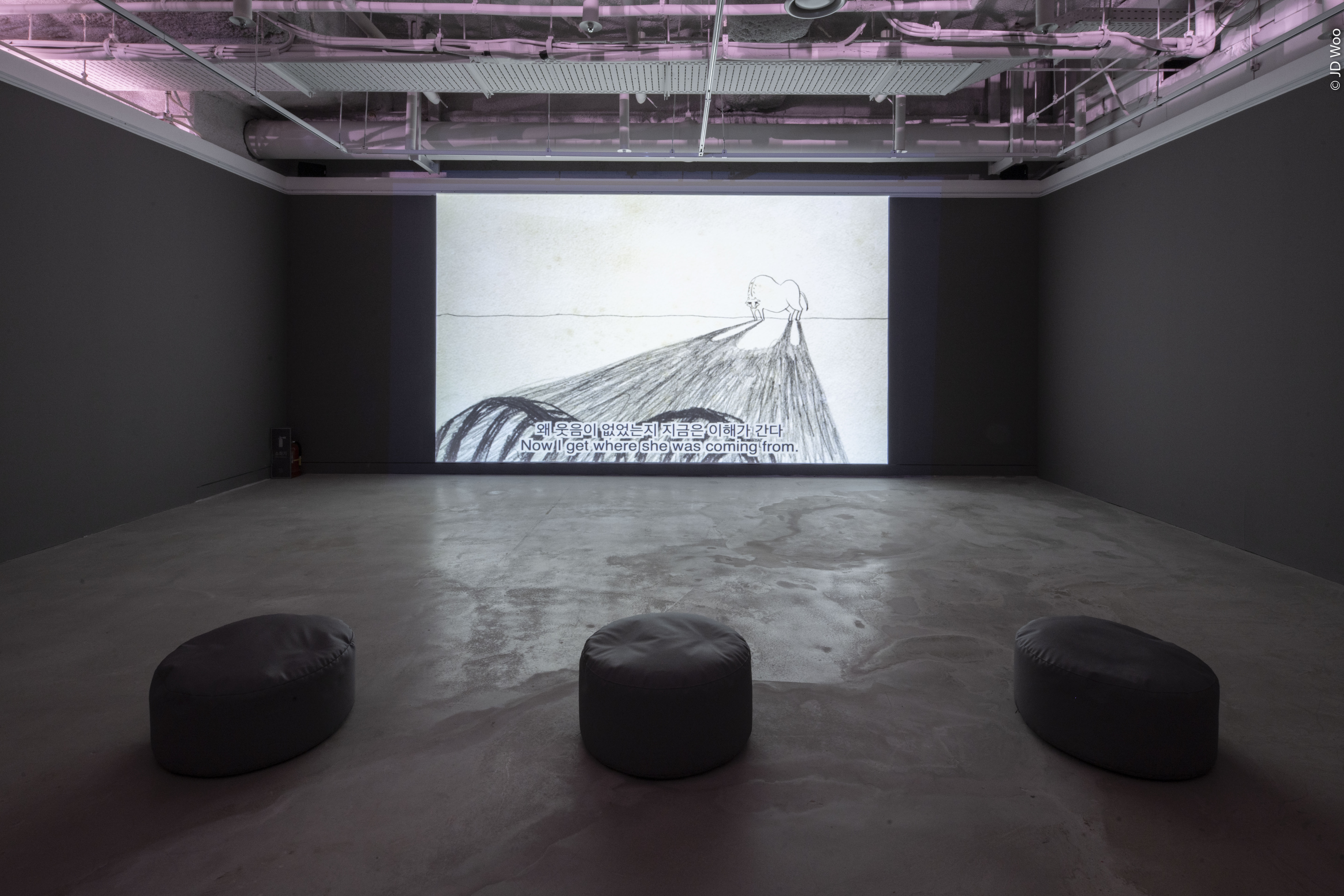전시 제목인 《하-하-하 하우스》의 ‘하-(Ha-)’는 기쁨의 웃음소리인 한편 한숨과 한탄을 동시에 표현할 수 있는 감탄사로, 가정을 보살피며 느끼게 되는 다양한 감정 상태를 표현한다. ‘하우스(Haus)’는 이러한 복합적인 마음과 감정이 공유되는 가족 구성원의 공간으로서 집의 의미를 담고 있다.