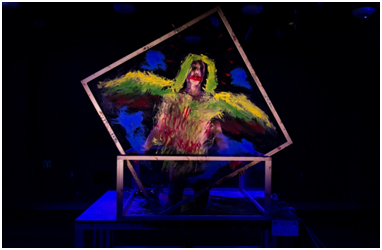 진실을 밝히려는 모습을 영상으로, 그를 둘러싼 거짓은 무대 위 모습으로, 두 가지를 번갈아 가며 표현한다. 결국 영상은 무대의 자신을 비추며 실제와 거짓의 혼돈을 표현한다. 스스로도 거짓이 진실이라고 믿게 되는 것처럼.