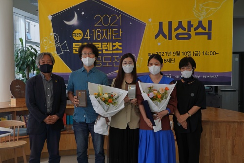 [플레이뉴스 문성식기자] 4·16재단(이사장 김정헌)은 상금 4000만원 규모의 전 국민 대상 ‘4·16재단 문화콘텐츠 공모전’ 장편 극영화·다큐멘터리 시나리오 공모전 시상식을 9월 10일 진행했다고 밝혔다.