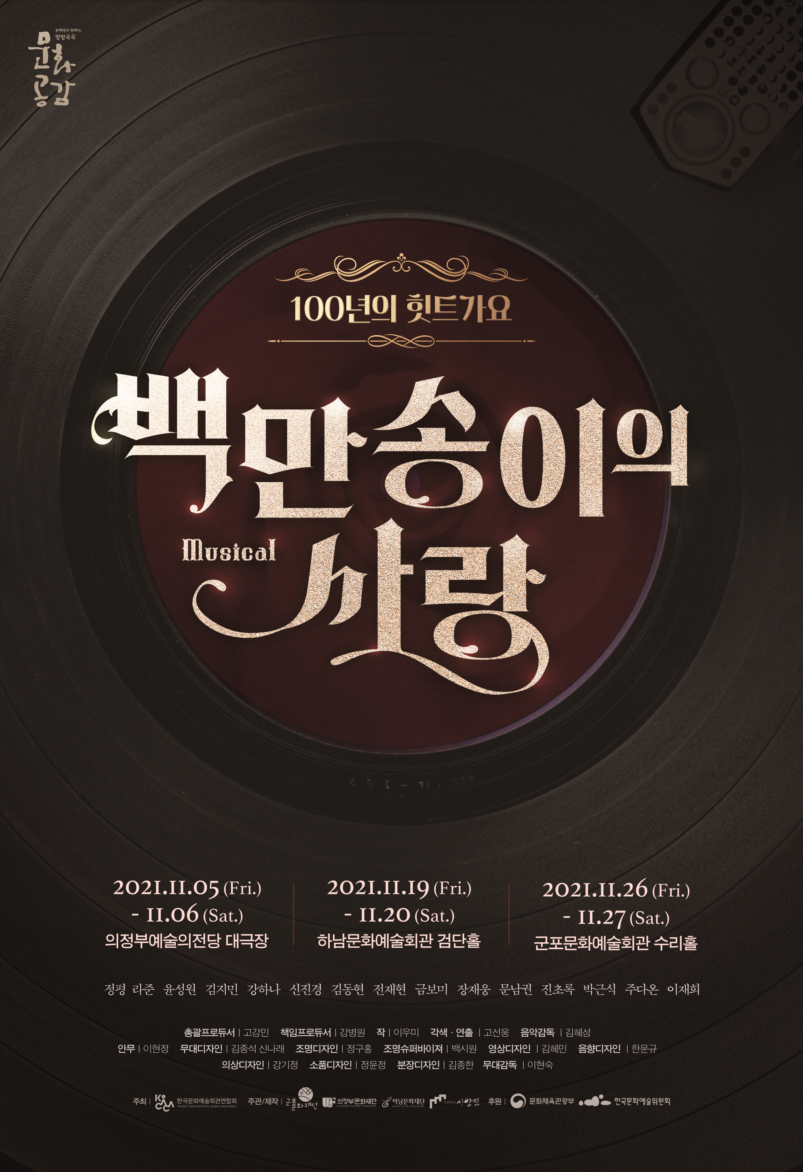 공연일시 | 의정부:2021년 11월 5일(금)19:30, 11월 6일(토) 15:00 하남:2021년 11월 19일(금) 19:30, 11월 20일(토) 15:00 군포:2021년 11월 26일(금) 19:30, 11월 27일(토) 15:00 |