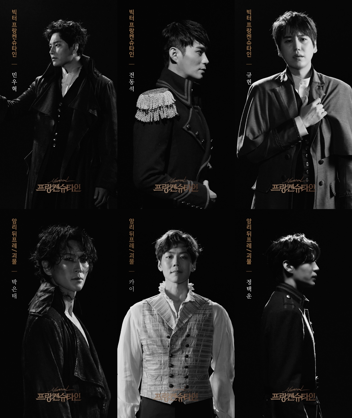 뮤지컬 '프랑켄슈타인' 측은 지난 14일부터 16일 공식 SNS를 통해 앙리와 괴물 역으로 1인 2역을 소화하는 박은태, 카이, 정택운의 캐릭터 모션 포스터를 순차로 공개했으며, 17일부터 19일까지 빅터 역의 민우혁과 전동석, 규현의 캐릭터 모션 포스터를 오픈해 시선을 집중시켰다.