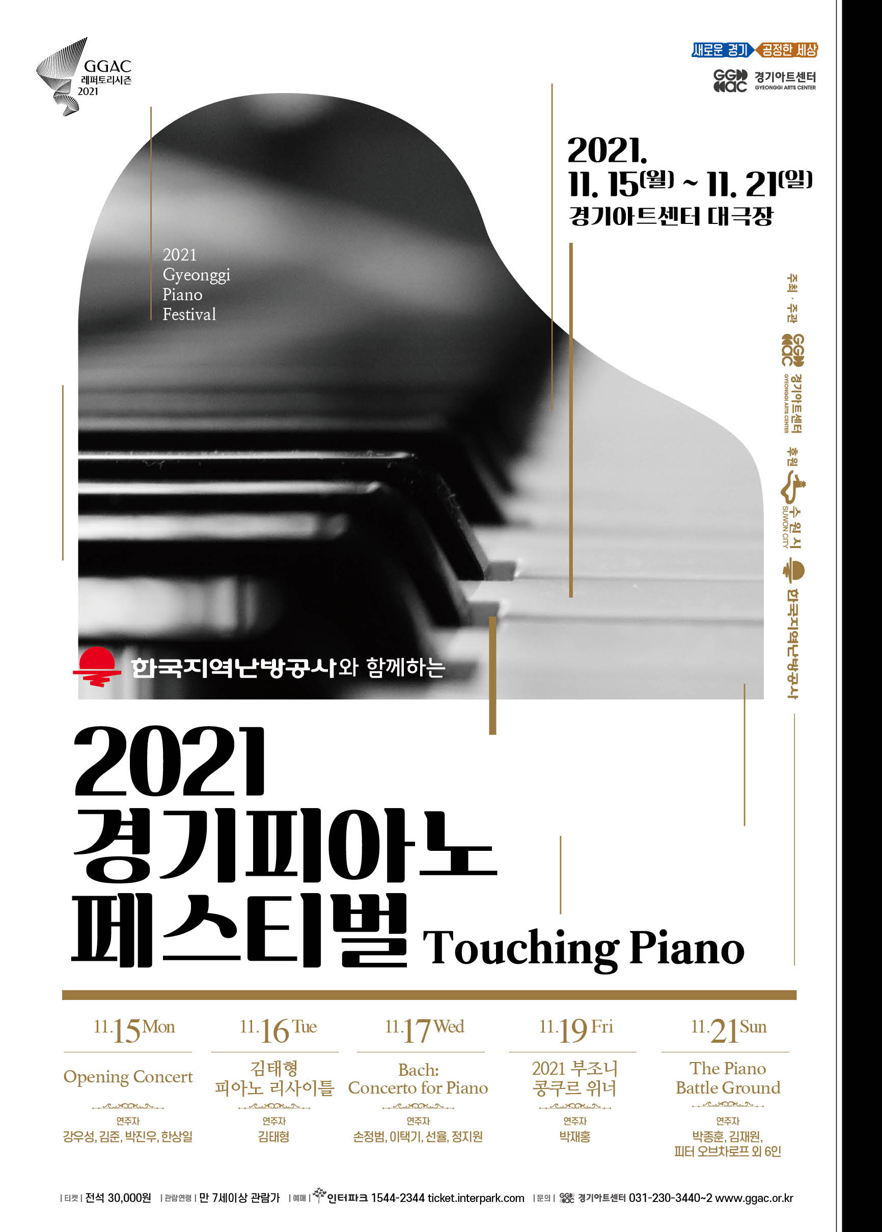 [플레이뉴스 문성식기자] 경기아트센터(사장 이우종)가 주최하는 '한국지역난방공사와 함께하는 2021 경기피아노페스티벌 – Touching Piano'가 11월 15일(월)부터 21일(일)까지 일주일간 경기아트센터 대극장에서 펼쳐진다.