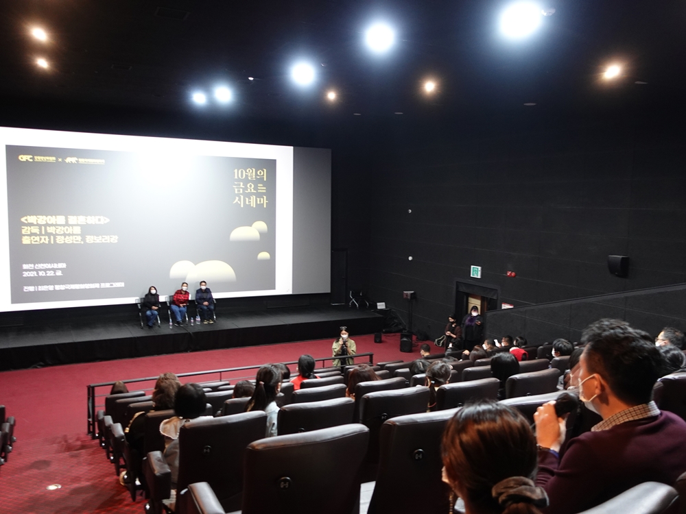 이번상영전에는박강아름감독과영화에출연한남편정성만씨, 딸정보리강양이함께참석해관객들과소통하는시간을가졌다.