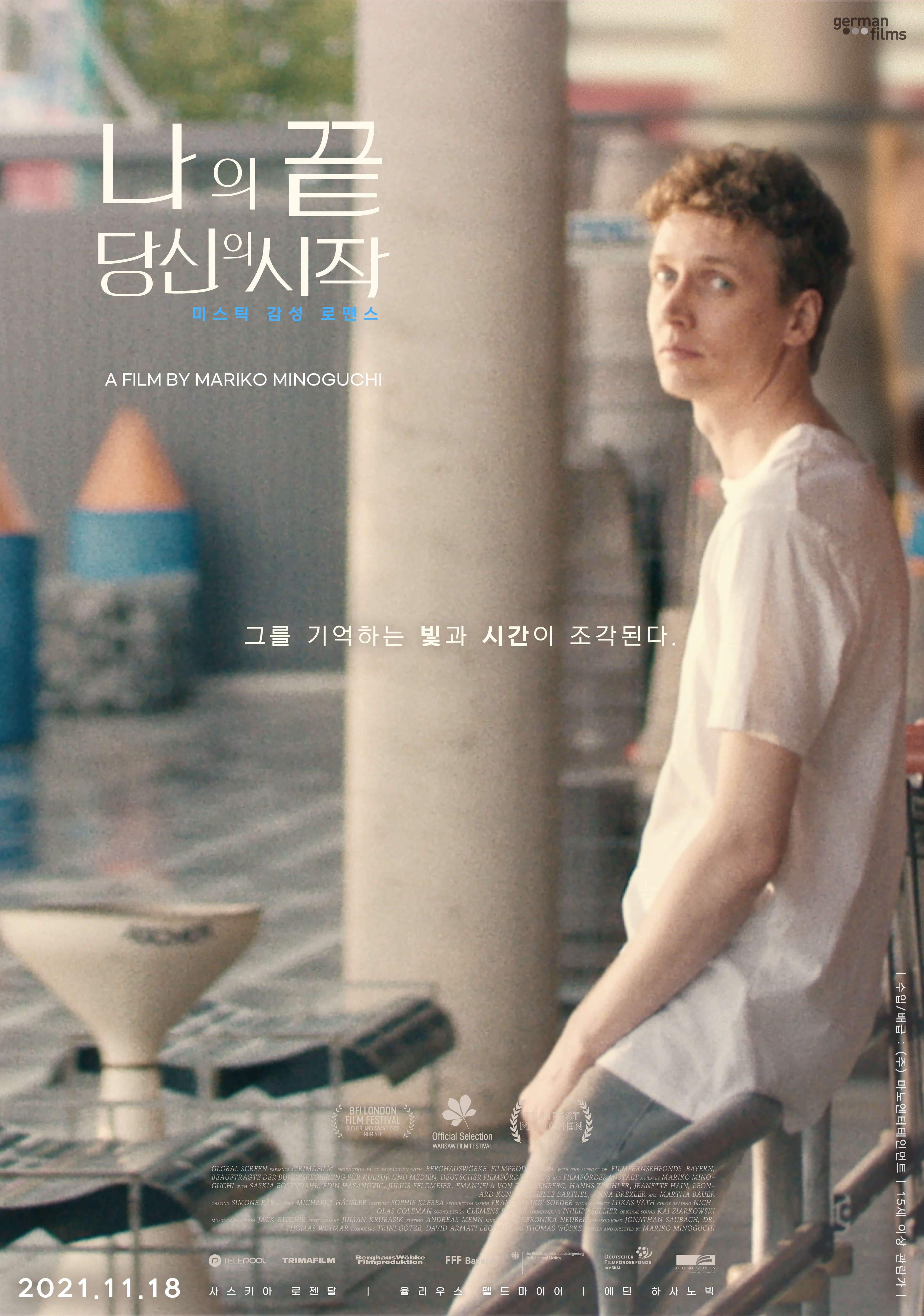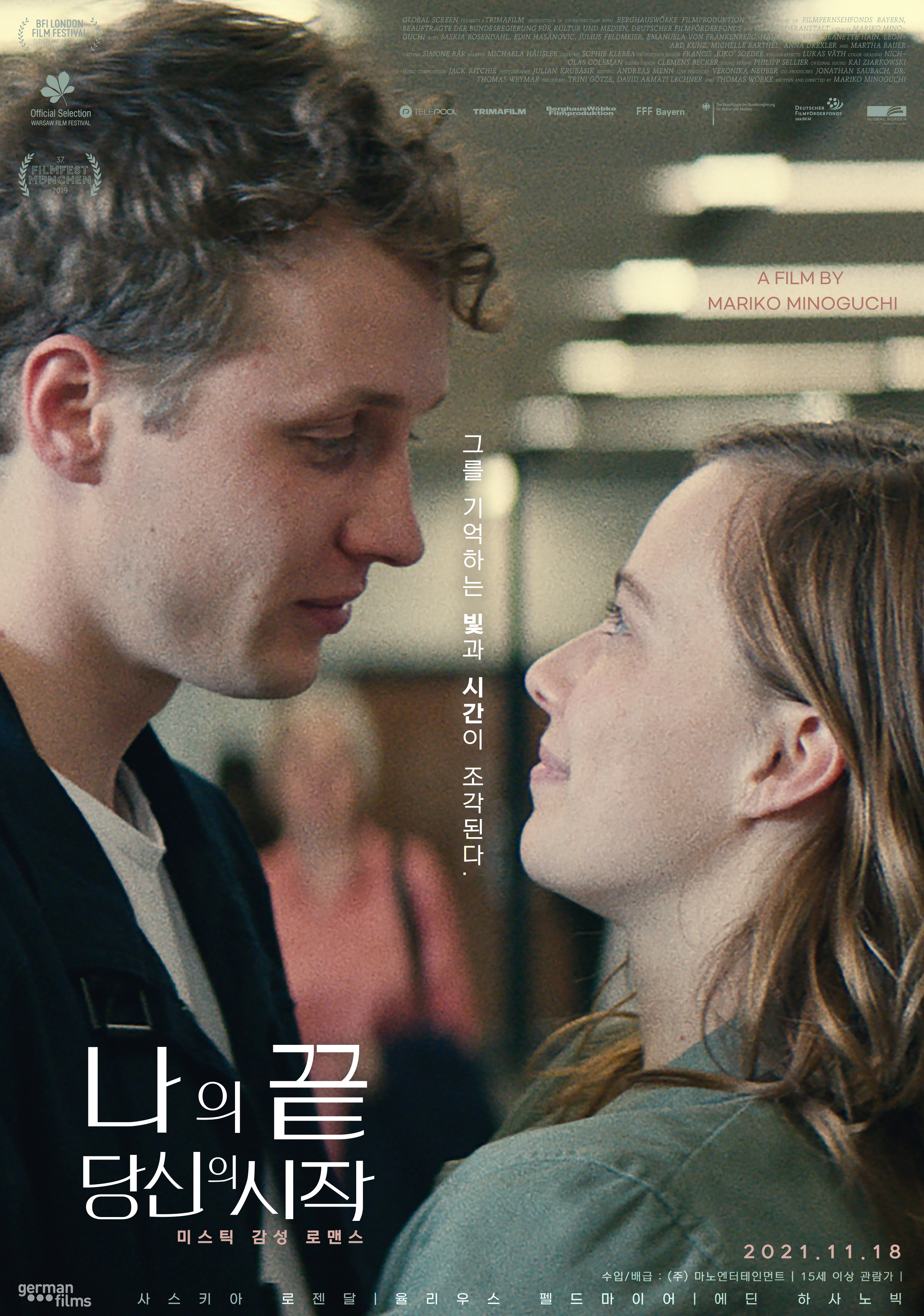 미스틱 감성 로맨스 '나의 끝, 당신의 시작'은 만남부터 이별까지라는 로맨스의 전형적인 흐름을 벗어나며 시작한다. “나의 끝은 너의 시작이야”라는 알 수 없는 말을 남기고 떠난 아론(율리우스펠드마이어)과 그가 없는 낯선 삶에 던져진 노라(사스키아로젠달)의 이야기를 담은 이 영화는 베를린 국제 영화제, 뮌헨국제영화제 등 다수의 영화제에서 호평받은마리코미노구치 감독 데뷔작으로 독일 영화 비평가 협회 최우수 장편 데뷔상과 최우수 각본상을 수상 한 바 있다.