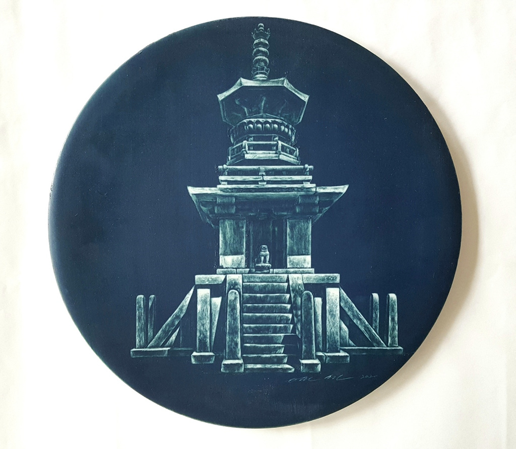 소중한 것을 보관하듯 오래된 건물, 고궁, 유물 등에서 보여 지는 아름다움을 표현하고 그 안에 있을 혼을 작품 안에 녹여내었다. 캔버스가 아닌 도판에 새긴 우리 문화재는 더욱 빛나고 우아하여 소중하고 아끼고자 하는 마음의 공감력을 감상자와 나누고자 한다.
