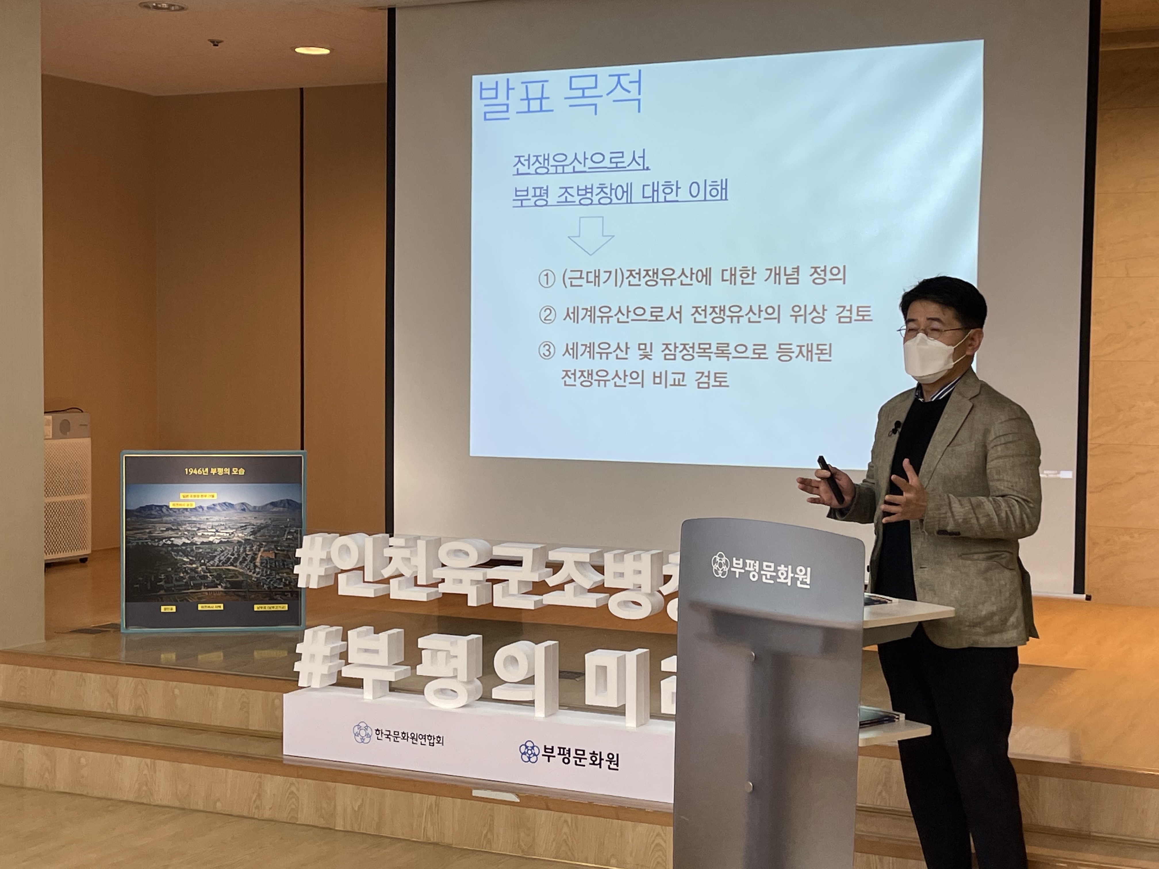 부평문화원이 원천콘텐츠 발굴지원사업에 참여하고, 이번 심포지엄을 통해 부평이 품은 역사적 흔적들을 근대 역사 문화유산 가치를 공론화하며, 새로운 패러다임의 변화를 찾는 유의미한 시간이 되길 기대한다”며 “일본의 역사 왜곡 문제에 대응하고, 네거티브 헤리티지를 다음 세대의 희망 자산으로 남겨 반전과 평화 교육의 장이 조성될 수 있는 기반이 구축되기를 희망한다”고 말했다.