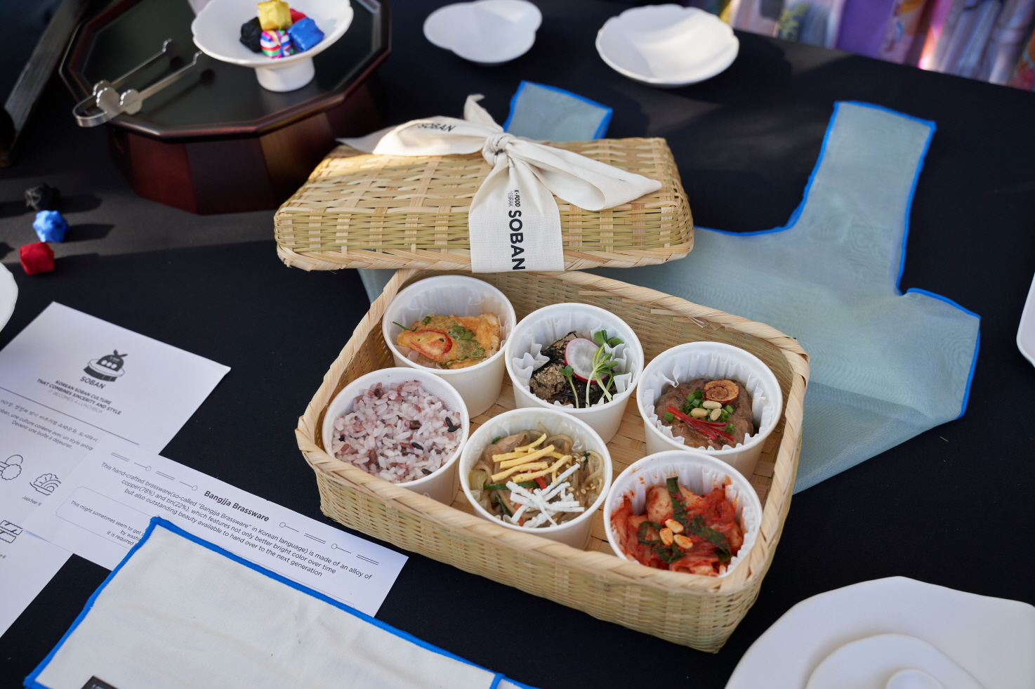 대나무를 엮어 만든 초배기 도시락 안에 밥과 김치, 떡갈비, 전, 묵 등 다양한 메뉴를 넣어 밥과 반찬으로 이루어진 한식문화의 다양성을 소개하는 한편 간편하면서도 든든한 식사를 선호하는 직장인은 물론 각기 다른 국적만큼 다양한 기호를 가진 학생들의 입맛을 사로잡았다.
