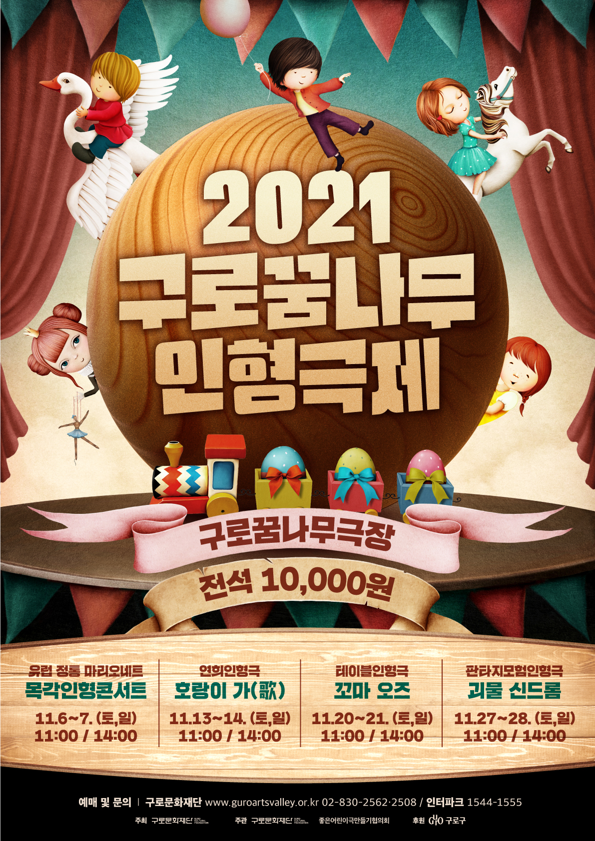 더불어 어린이 공연 및 교육프로그램으로 특화된 ‘구로꿈나무극장’에서 '2021 구로꿈나무인형극제'가 6일부터 28일까지 매 주말마다 색다른 4개의 작품이 선보인다. 유럽의 ‘마리오네트’ 인형과 한국의 한지를 이용해 만든 인형 등 여러 국적의 인형들이 생생히 살아 움직이는 모습을 극장에서 볼 수 있다.