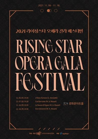 [플레인뮤스 문성식기자] 한국오페라인협회(이사장 직무대행 이강호)는 서울시 후원으로 6일과 7일, 16일과 18일 총 4일간 광화문아트홀에서 '2021 제1회 라이징스타 오페라 갈라 페스티벌'을 개최한다고 밝혔다.