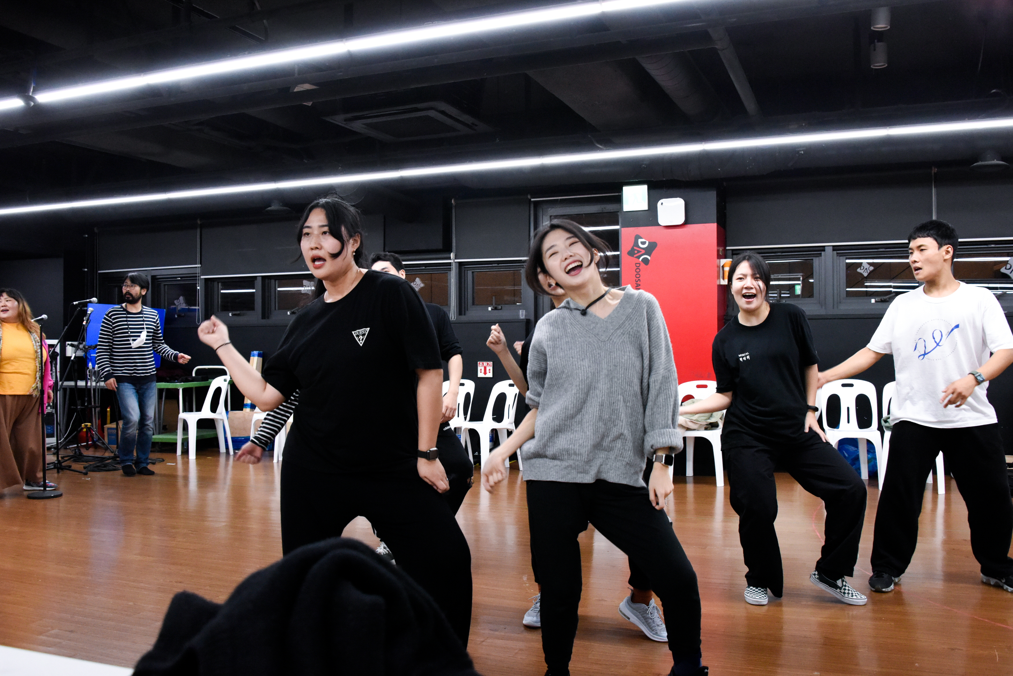 ▷ ‘바바리맨’역에는 임진웅 배우가, ‘호미엄마’역에는 황미영 배우, ‘야쿠르트 아줌마’역에 정양아가 안정적인 연기를 펼친다. ‘김박철’역에는 뮤지컬 배우 박기원이 풍부한 성량을 들려주고, ‘호미’역에 박유진, ‘궁전’역에 김민주가 어디로 튈지 모르는 사춘기 중학생 연기를 보여준다. 이밖에도 ‘301호 아저씨’역에 이동영 배우, 앙상블에 김원태, 박수빈, 이승훈, 이주형, 이지원, 최지현 배우가 캐스팅되어 흥미로운 방식으로 이야기의 전개를 돕는다.
