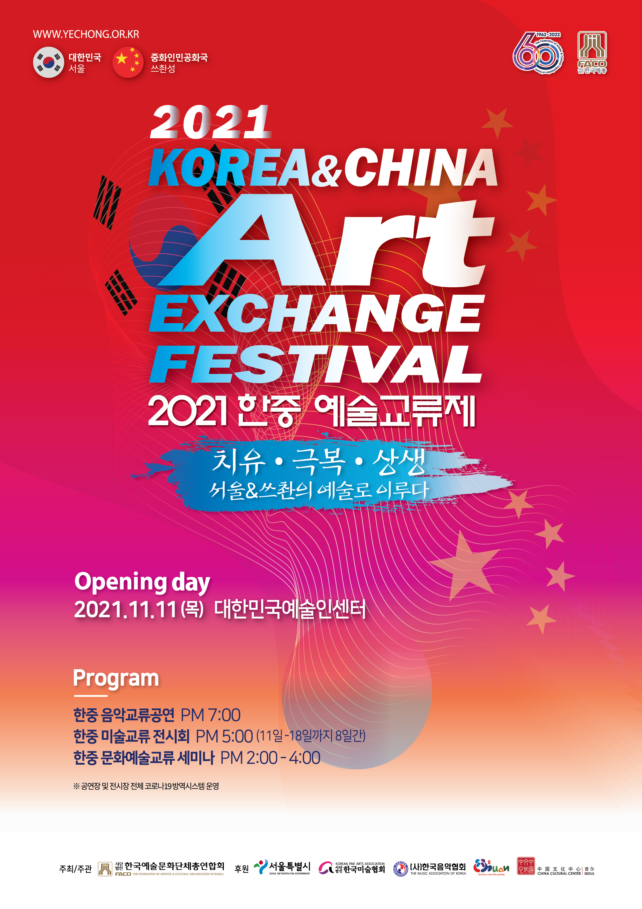 이를 통해 한국과 중국의 예술·문화·인적 교류를 활성화하고 코로나19로 지친 마음을 치유하는 뜻깊은 시간을 도모한다.