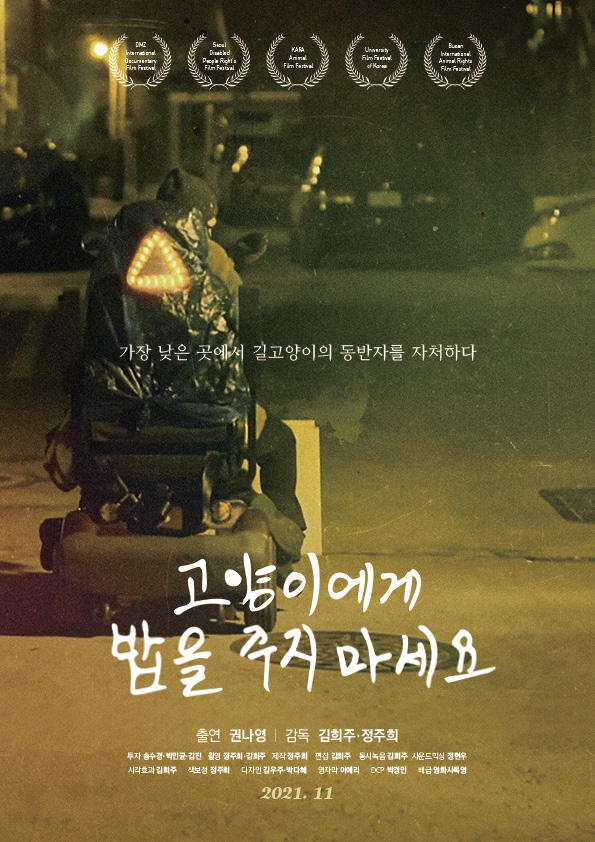 선천적인 장애와 악화하는 병세에도 불구하고 가장 낮은 곳에서 길고양이의 동반자를 자처하는 캣맘 나영 씨의 휴먼스토리를 담으며, DMZ 다큐멘터리영화제, 부산국제동물영화제 등 다수영화제에서 상영되며 관객들의 호평을 받은 '고밥주'는 오는 11월 11일에 개봉한다.